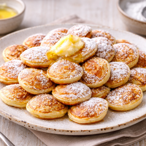 Soft, fluffy Dutch mini pancakes made with yeast and a little buckwheat. Serve hot with melted butter and plenty of icing sugar.