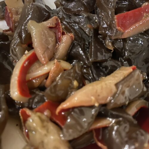 Pickled Scarlet Elf Cups and Jelly Ear Mushrooms